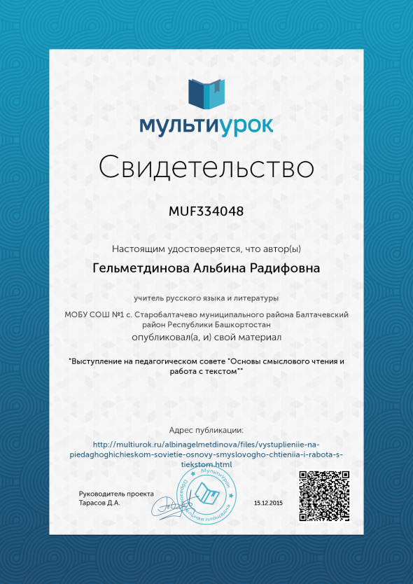 Учитель русского языка и литературы