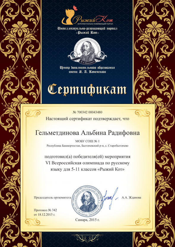 VI Всероссийская олимпиада по русскому языку для 5-11 классов «Рыжий кот» |