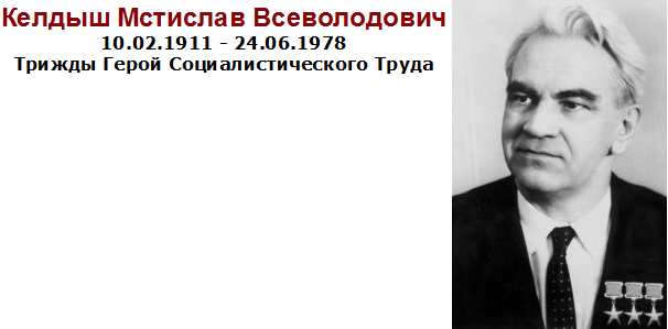 Родился 29 января 1911 года в городе Рига в семье профессора Рижского политехнического института, крупного инженера- строителя (впоследствии академика архитектуры) Всеволода Михайловича Келдыша и домохозяйки Марии Александровны Скворцовой. В 1915 году семья Келдышей переехала из прифронтовой Риги в Москву. В 1919-1923 годах М.В.Келдыш жил в городе Иваново, где отец преподавал в политехническом институте. По возвращении в Москву (1923) учился в школе со строительным уклоном, летом ездил с отцом на стройки, работал разнорабочим. В 1927 году окончил школу и хотел получить нравившуюся ему отцовскую профессию инженера-строителя, однако в строительный институт, где преподавал отец, его не приняли по молодости лет. По совету старшей сестры, закончившей физико-математический факультет Московского государственного университета имени М.В.Ломоносова (МГУ), он поступил на тот же факультет МГУ. С весны 1930 года он одновременно с учёбой начал работать ассистентом в Электромашиностроительном институте, затем в Станкоинструментальном институте. По окончании МГУ в 1931 году М.В.Келдыш был направлен в Центральный аэрогидродинамический институт имени Н.Е.Жуковского (ЦАГИ). Научную жизнь ЦАГИ в это время возглавлял С.А.Чаплыгин. М.В.Келдыш проработал в ЦАГИ до декабря 1946 года сначала инженером, затем - старшим инженером, начальником группы, а с 1941 года -начальником отдела динамической прочности. Начальный период работы М.В.Келдыша в ЦАГИ связан с исследованиями нелинейных задач обтекания. В работах этого цикла «Внешняя задача Неймана для нелинейных эллиптических уравнений с приложением к теории крыла в сжимаемом газе» (1934) и «Строгое обоснование теории винта Жуковского» (1935, выполненных в соавторстве с Ф.И.Франкпем), «К теории колеблющегося крыла (1935, совместно с М.А.Лаврентьевым) впервые было строго рассмотрено влияние сжимаемости среды на аэродинамические характеристики обтекаемых тел и обобщена известная теорема Жуковского о подъёмной силе; впервые установлено, что при определённых режимах колебаний крыла возникает тяга. Он занимался теорией удара тела о жидкость и движением тел под поверхностью жидкости. Продолжая работать в ЦАГИ, М.В.Келдыш поступил осенью 1934 года в аспирантуру (дополненную затем двухлетней докторантурой) Математического института имени В.А.Стеклова АН СССР к М.А.Лаврентьеву, где занимался вопросами теории приближений функций, тесно связанными с прикладной тематикой его работы (гидро-, аэродинамика). В 1935 году ему без защиты диссертации была присвоена учёная степень кандидата физико- математических наук, в 1937 году - учёная степень кандидата технических наук и звание профессора по специальности «аэродинамика». Келдыш Мстислав Всеволодович 10.02.1911 - 24.06.1978 Трижды Герой Социалистического Труда26 января 1938 года им была защищена диссертация на соискание учёной степени доктора физико-математических наук на тему «О представлении рядами полиномов функций комплексного переменного и гармонических функций». Он внёс выдающийся вклад в развитие советской космической науки и техники. Начав работать по космической тематике в 1946 году в творческом сотрудничестве с С.П.Королёвым, он явился одним из инициаторов широкого развертывания работ по изучению и освоению космоса. С начала 1956 года возглавил один из ведущих участков в их проведении. Вел