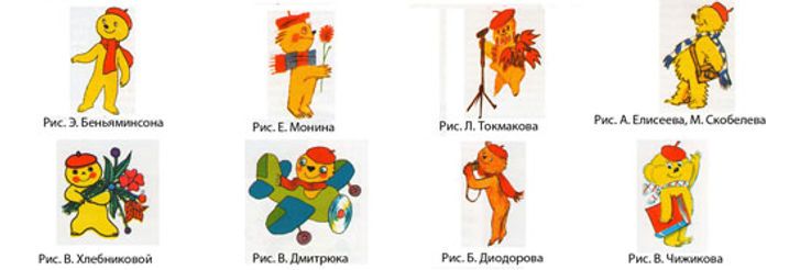 И с тех пор в журнале поселился пушистый волшебный герой, жёлтенький, как одуванчик, в красном берете и шарфике, с фотоаппаратом через плечо, такой, каким все знают его сейчас. Вот как в разное время представляли себе Мурзилку художники, сотрудничающие с журналом: