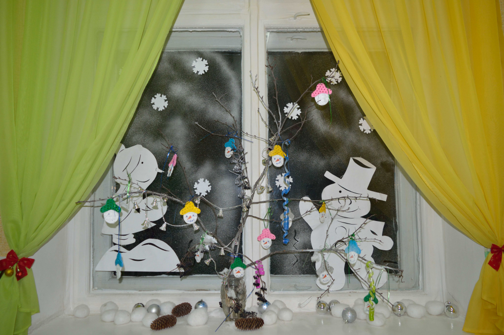 А так мы украсили окно в раздевалке