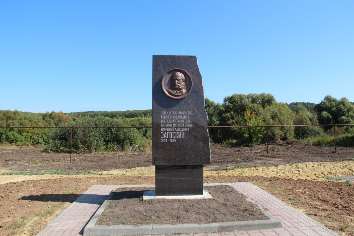Русский морской офицер известен прежде всего как исследователь Русской Америки — Аляски, Алеутских островов, Северной Калифорнии. В середине XIX века он прошел по рекам Аляски тысячи километров, описал жизнь местных племен и составил первые подробные карты внутренних районов этого далекого владения Российской империи. Загоскин родился в 1808 году в селе Николаевка Пензенской губернии. Здесь же спустя 200 лет был открыт памятник великому исследователю. Монумент получился необычным: в основании два огромных камня общим весом около 3,5 тонны, один из которых отполирован, а другой нарочно оставлен грубым — так архитекторы захотели показать, насколько трудным был путь первопроходца. На гладкой стороне укреплен бронзовый барельеф Загоскина, а внизу выгравирована надпись: «Здесь, в селе Николаевка, родился выдающийся исследователь Русской Америки, морской офицер Лаврентий Алексеевич Загоскин». Проект реализовало Пензенское отделение Русского географического общества.