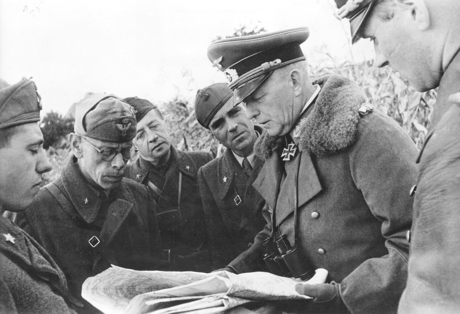 Рис. 4. Командир 1-й танковой группы Эвальд фон Клейст (справа) отдает приказы командиру итальянской дивизии «Пасубио» генералу Джованнелли. Снимок сделан в районе Днепропетровска, 01.10.1941-31.10.1941