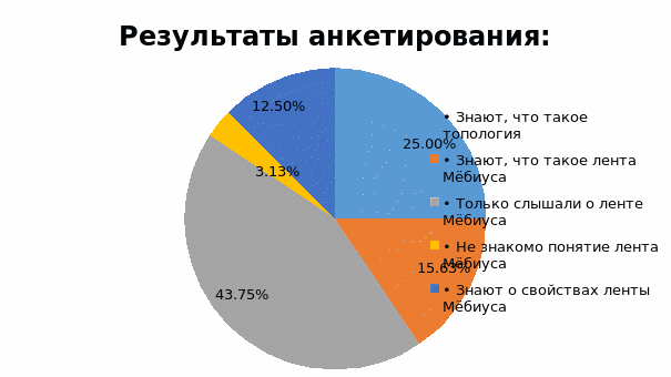 В ходе выполнения работы были детально изучены и определены ключевые топологические свойства этого уникального объекта, проведено анкетирование среди сверстников и серия практических экспериментов, итогом которых стала разработка оригинального электронного продукта (презентация).