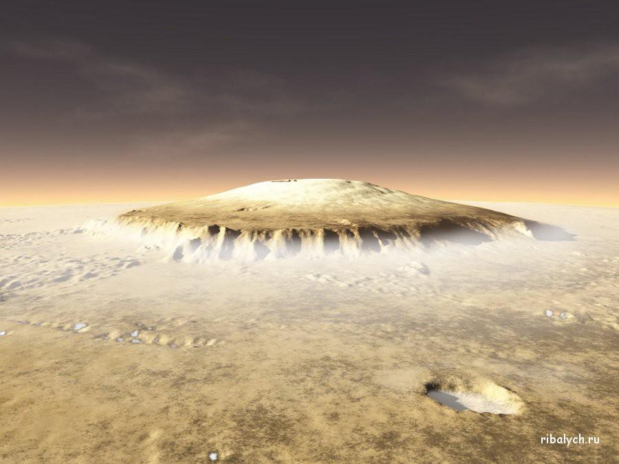 В нашей Солнечной системе самая высокая гора расположена на Марсе. Olympus Monsимеет высоту 22 км и 624 км в диаметре у основания. Эверест рядом с ней кажется в 3 раза уменьшенной копией. Под горой легко уместилась бы вся Британия, а кратер стал бы укрытием для Лондона. Но интересный факт – гора настолько огромна и широка, что уклон на ее «боках» довольно мал и подъем на вершину не представляет сложности.