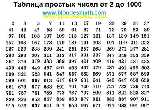 Существует таблица простых чисел (простые числа хотя бы в первых двух-трех строках полезно запомнить):