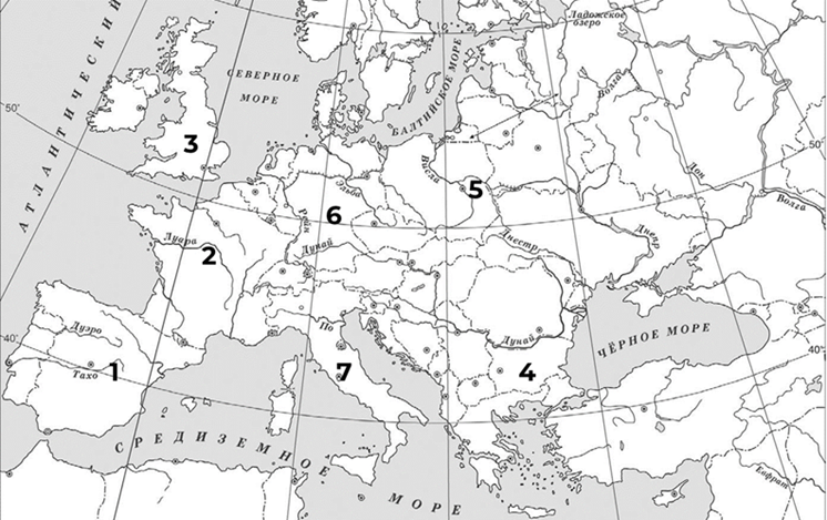 1. Напишите название страны, обозначенной на карте цифрой «1».