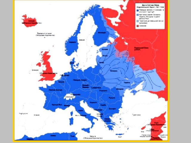 - Война СССР против нацистской Германии и ее союзников (Болгарии, Венгрии, Италии, Румынии, Словакии, Финляндии, Хорватии);