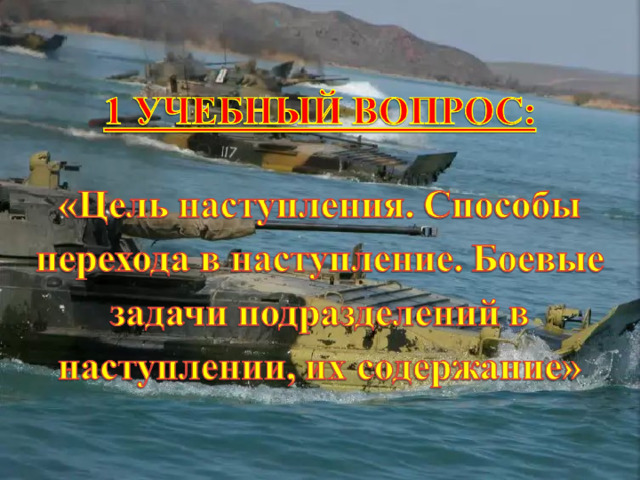 Разгром противника и захват намеченных районов (рубежей) местности достигается умелым применением средств поражения, эффек-тивным использованием результатов ядерных ударов, ударов авиации и огня артиллерии, а также решительными действиями подразделений и стремительным развитием наступления в глубину.