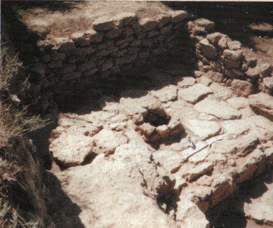 Вокруг всего поселения тогда была построена каменная оборонительная стена. Она ограничивала квадратный в плане участок со сторонами около 100x100 м. По углам, вероятно, располагались башни. Камень для этого строительства доставляли с других близлежащих поселений, и, возможно, из Керкинитиды, оборонительные сооружения которой как раз в это время разбираются. К сожалению, в более позднее время и эти стены также были разобраны на камень.