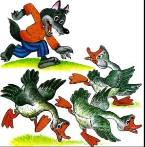 Гуси, расправив крылья (вытянув руки в стороны), летят через луг домой, а волк, выбежав из логова, старается их поймать (коснуться рукой). Пойманные гуси идут в логово. После нескольких перебежек ( по условию игры) подсчитывают пойманных волком гусий. Затем назначаются новые волк и пастух. Игра повторяется 3-4 раза.