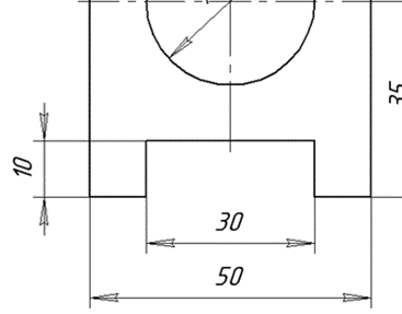 | 7. Построить вырез внизу прямоугольника, относительно осевой, симметрично. 8.Нанести размеры элементов и габаритные, т. е. наибольшие по длине и высоте, размеры детали, указывают ее толщину (размеры наносим сплошной тонкой линией), обратить внимание на нанесение стрелок на размерных линиях. 9. Обвести контуры детали сплошной толстой основной. | рис.2 чертежные инструменты (циркуль, угольник), простые карандаши, ластик рис.3 |