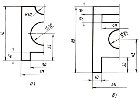 Цель: Обучить правилам построение плоской детали, нанесения размеров на чертеже, приемам работы чертежными инструментами.