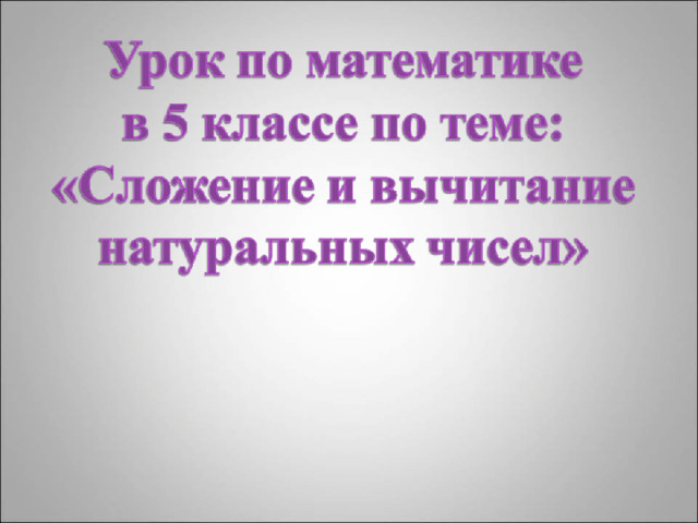 «Презентация к уроку математики "Сложение и вычитание натуральных чисел" в 5 классе»