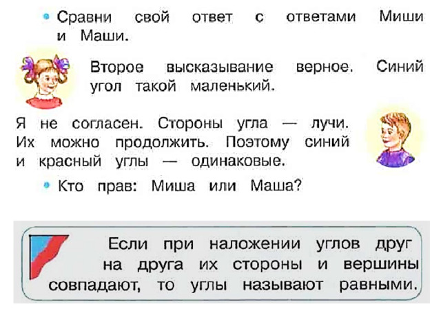 Угол – это геометрическая фигура, образованная двумя разными лучами