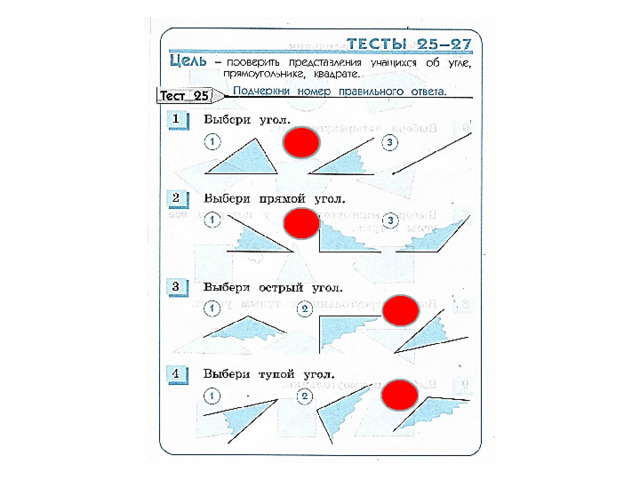 Назовите все фигуры с острыми углами, с прямыми углами.
