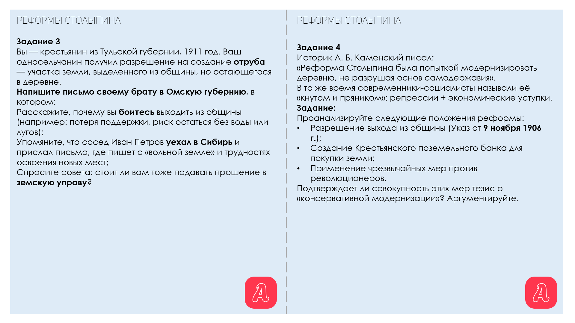 Рабочий лист по реформам Столыпина