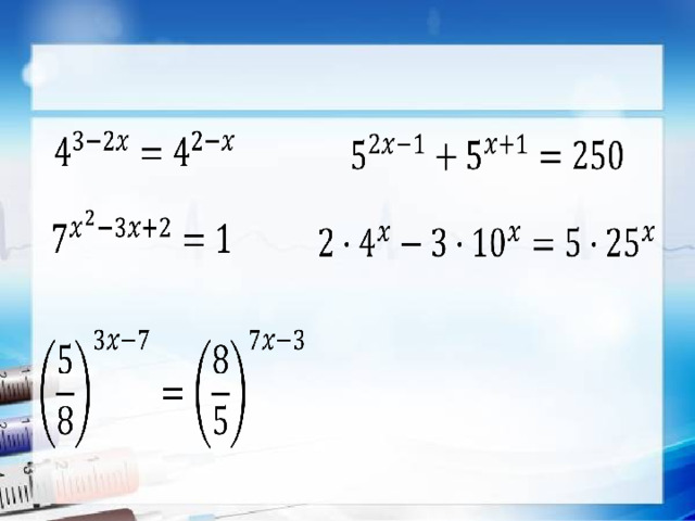 - Обобщить и систематизировать знания о методах решения показательных уравнений.