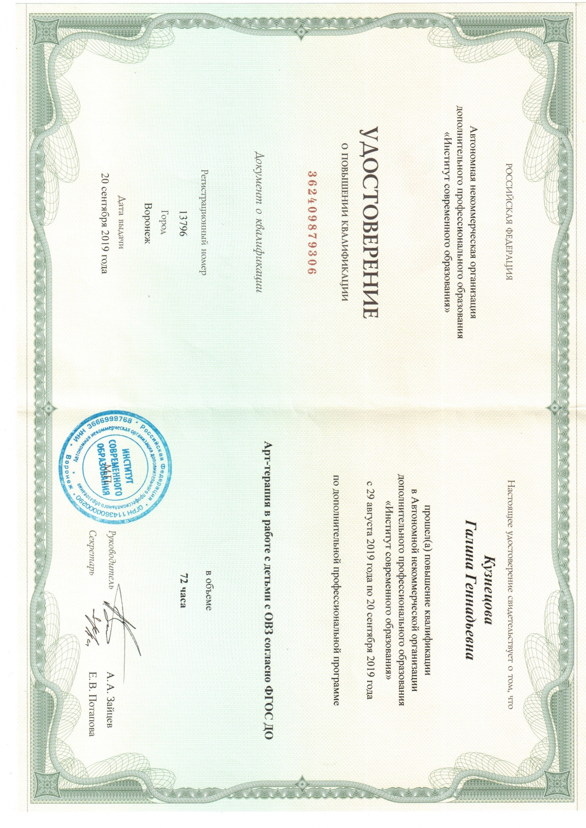 Высшее, освоила программу специалитета по специальности "Психология" и успешно прошла государственную итоговую аттестацию. Решанием Государственной экзаменационной комиссии присвоена квалификация - психолог, преподователь психологии.