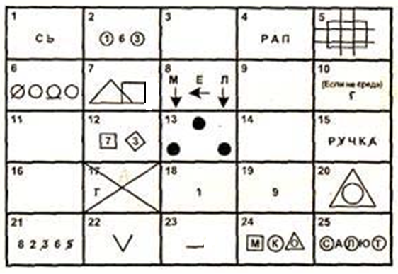 Для проведения исследования от экспериментатора требуется четкое произнесение задания и номера квадрата, поскольку номера заданий и квадратов на бланке не совпадают.