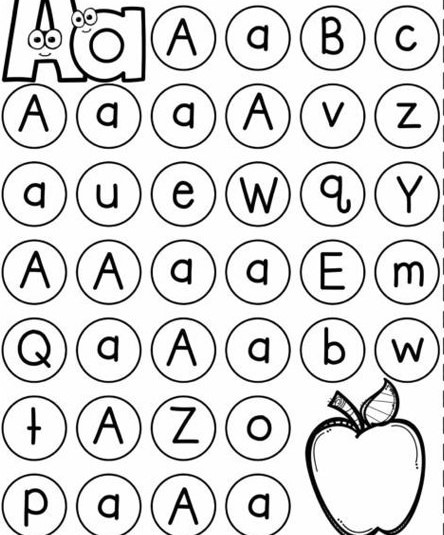 Разукрась яблоко с подходящей строчной буквой.