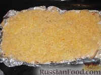 | Сыр натираем на средней тёрке. По истечении времени вынимаем форму из духовки, посыпаем помидоры сыром. | |