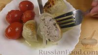 | Затем заполняем помидоры фаршем, хорошо утрамбовывая. | |