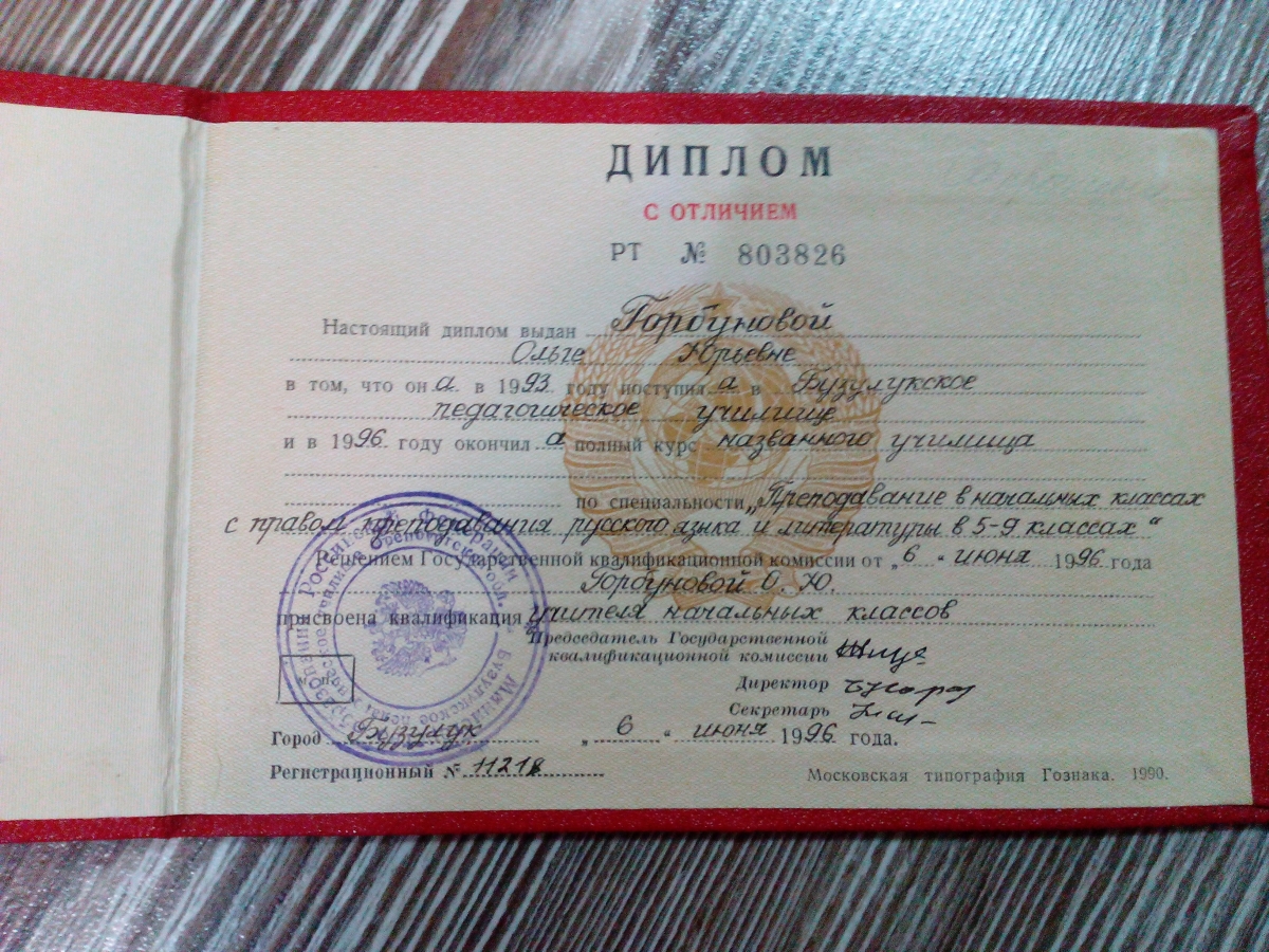 Окончила «Педагогический колледж» г. Бузулука, 1996г.,