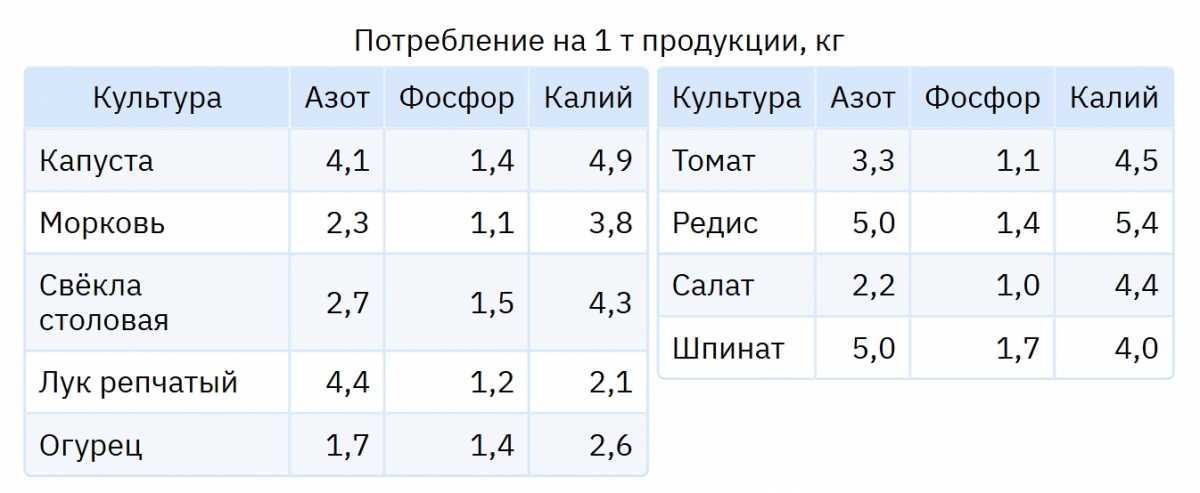 Проанализируйте данные о потреблении растениями минеральных веществ. Выберите верные утверждения.