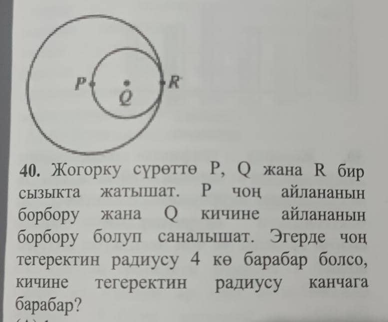 Эгерде (3,4) чекити борбору (0,0) болгон айланада жатса, анда төмөнкү чекиттердин кайсынысы тегеректен тышкары жатат?